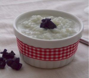 A la base la recette préconise d’utiliser du lait de riz, j’ai préféré utiliser du lait de riz-châtaignes-avoine, d’une part parce que je n’avais pas de lait de riz (c’est une bonne raison) et d’autre part parce que ce mélange me plait particulièrement ! Très doux au palais, il se marie à merveille avec des desserts « lactés ».