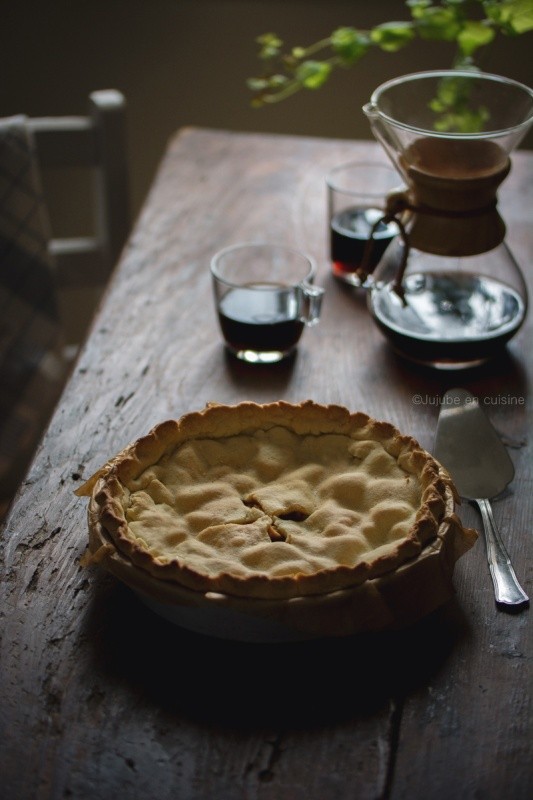 Il y a quelques jours nous étions invités à un repas de famille — ma famille — que je ne vois malheureusement pas aussi souvent que ce que je le souhaiterais… Aussi, lorsque notre hôte m’a répondu « apporte un dessert » lorsque je lui ai demandé ce qui lui ferait plaisir, je me suis dit que je me devais de faire quelque chose de particulièrement gourmand (pour marquer le coup), mais surtout qui conviendrait à tout le monde : la fameuse tarte/tourte aux pommes américaine « Apple Pie » !