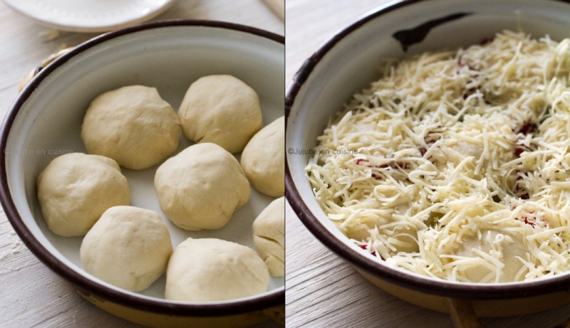 A la sortie du four, placez au centre de la table, chacun détache une boule de brioche, la trempe dans le fromage et/ou dans les sauces qui garnissent la brioche… C’est délicieux !