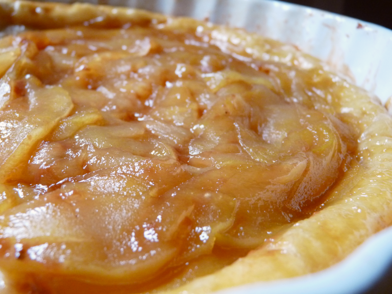 *Sur le kit à tarte ils ont l’air de couper les pommes en quatre (ou en gros morceaux en tout cas) et je vous conseille de faire comme cela. Je n’avais malheureusement pas assez de pommes pour me le permettre, il a fallu que je ruse pour que les pommes prennent le maximum d’espace !