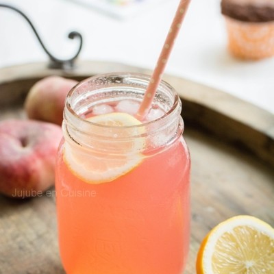 J’ai reçu mercredi un gros colis de fruits et légumes dans lequel se trouvaient des pêches plates et de beaux citrons jaunes. Il ne m’a pas fallu beaucoup de temps pour les associer en une boisson douce et acidulée, parfaite pour le thème de cette Battle !
