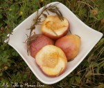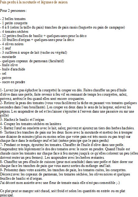 tarte cerise meringuéetatin d'abricotPain perdu à la moutarde et légumes de saisonTian de légumes d'autrefoisTarte ensoleillée et fleurs de romarinTerrine de l'entilles corail betterave au lait de cocotarte pechepeches roties au romarin