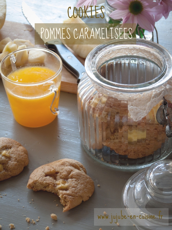 j’ai une recette de base qui me convient très bien,donc je prendrai ma recette mais par-contre je t’empreinte l’idée de cookies aux pommes caramélisées