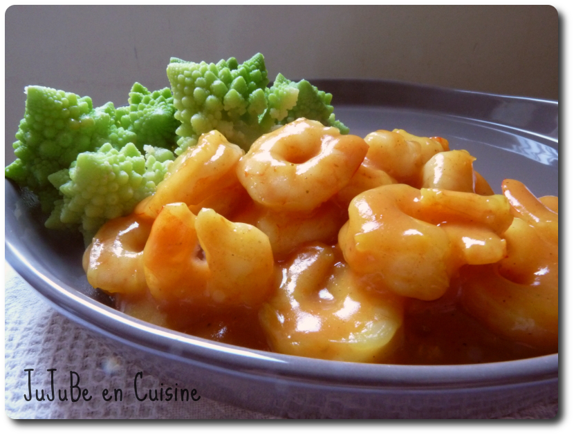 Une petite entrée faite ce soir avec de grosses crevettes surgelées. Un régal. Juste que mon curry est assez fort et je devrai en mettre moins la prochaine fois car ça arrache!