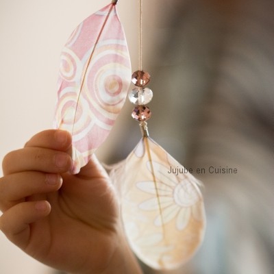 Quelle douceur et délicatesse pour cet attrape-rêves ! Les plumes sont en effet très originales, j’aimerais en trouver dans le même style.