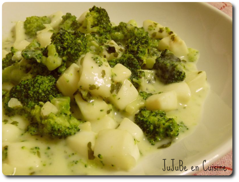 Versez la crème fraiche sur les encornets, ajoutez les brocolis, l’ail pressé et le persil. Salez et poivrez à votre convenance.