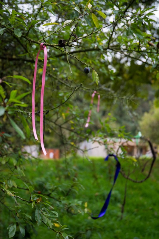 (cette photo est une mascarade, en vrai c’est Eoin qui a tout fait… Que voulez-vous que Stéphanie fasse avec une masse pour planter un arbre ?! Haha !)