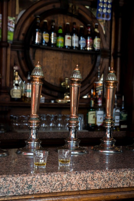 Le bar tel qu’il est à présent date de 1897 et il l’un des seuls des douze bars victoriennes restant à Dublin avoir gardé son état d’origine, comme par exemple le comptoir en granit écossais, choisi pour sa capacité à rester froid, et garde ainsi les boissons à bonne température lorsque l’on y pose son verre (ingénieux !). Ce comptoir a d’ailleurs une caractéristique intéressante, il dispose d’un sorte de gouttière, qui empêche de se mouiller les genoux si l’on renverse son verre ! Le liquide glisse en dessous de la bordure et coule le long du bar…