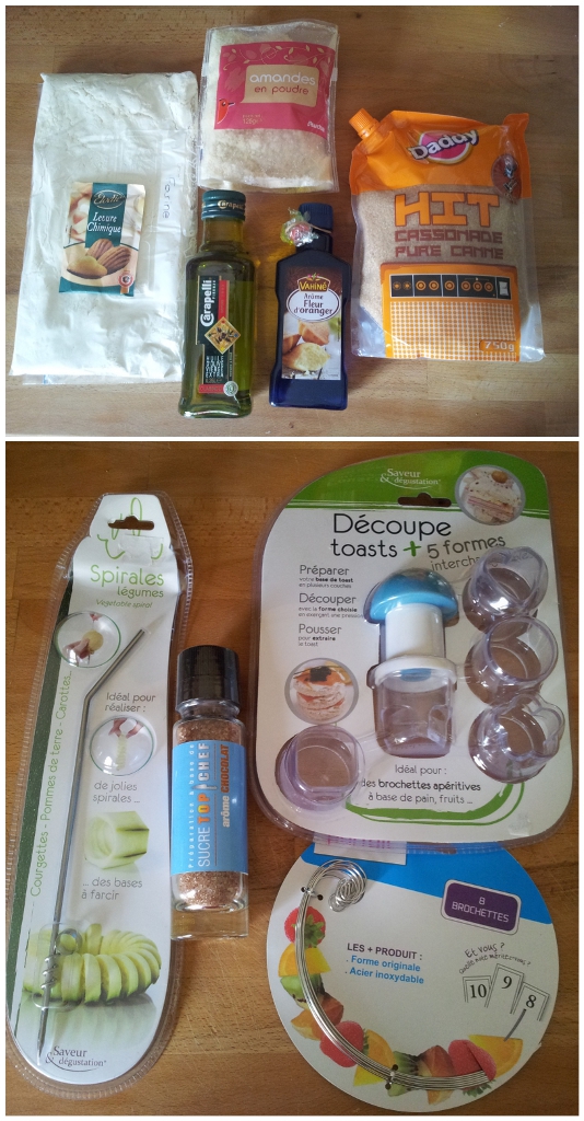 En retour j’ai reçu une box de Vanessa, qui m’a proposé de réaliser son gâteau à l’orange, safran et huile d’olive et qui m’a envoyé tout plein de cadeaux !!! :D
