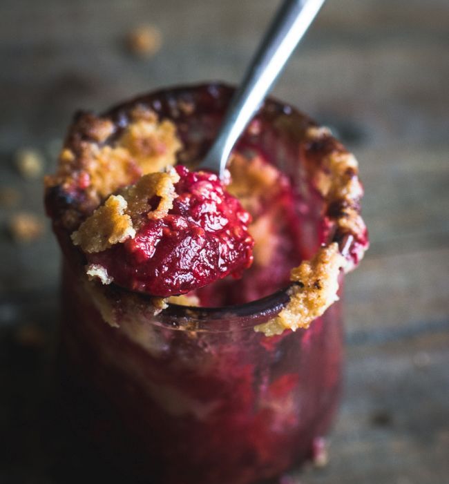 Sauf que j'ai eu la "brillante" idée (remarquez les guillemets) de mettre les framboises dans un pot plutôt qu'un ramequin.