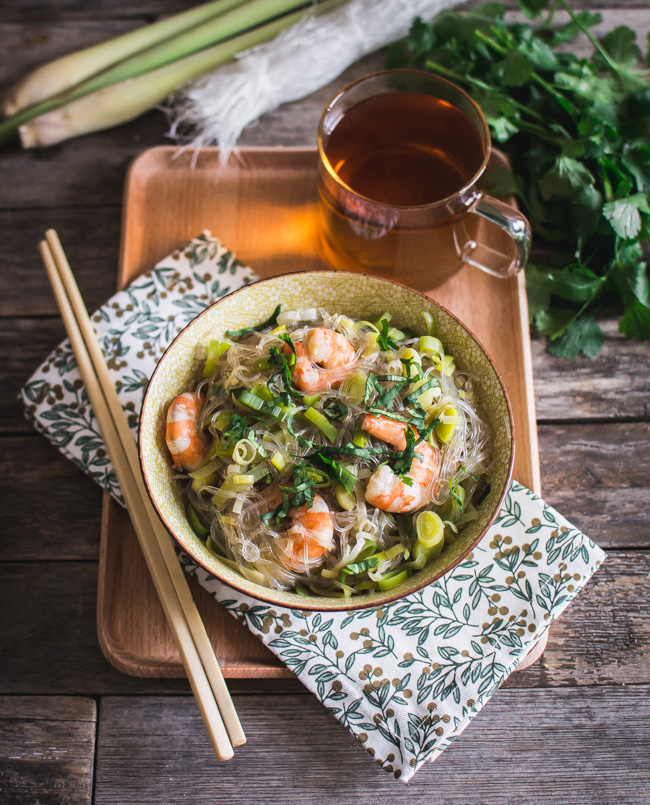 Faux « One pot pasta » : Vermicelles, crevettes, bouillon citronnelle et gingembre