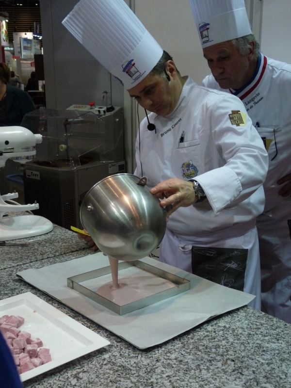 Démonstration autour de la purée de fruits par le Maître Pâtissier Bruno COURET, avec qui j’ai eu la chance de discuter par la suite, puisque ce monsieur s’avère être le voisin et ami de Jean-Pierre ! :)