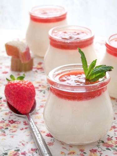 Panna Cotta légère à la menthe et coulis de fraise-rhubarbe