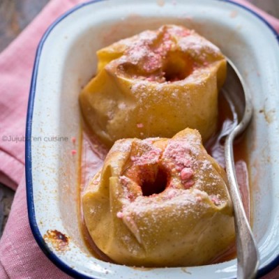 D’ailleurs, vous les faites comment vos pommes au four ? Vous utilisez quelle variété de pomme ? Vous enlevez la peau ou pas ? (« Elle est de la police la Jujube ? »)