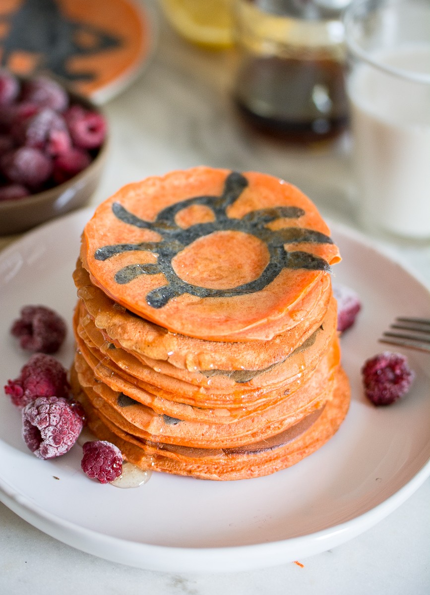 Après vous avoir proposé des cupcakes sanglants pour Halloween, je reviens avec des mini crêpes toutes mignonnes avec des fantômes et des araignées dessinés dessus !