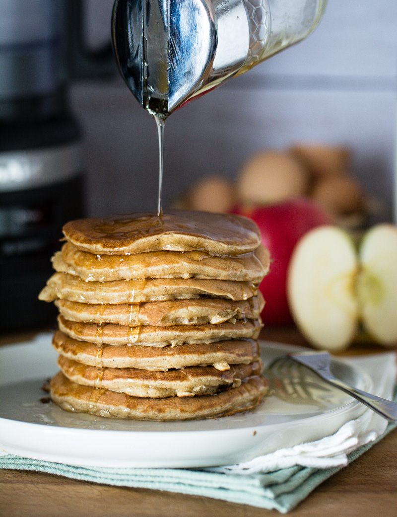 Des pancakes à la pomme râpée, moelleux à souhait, et très peu sucrés (juste avec la pomme qu'ils contiennent).