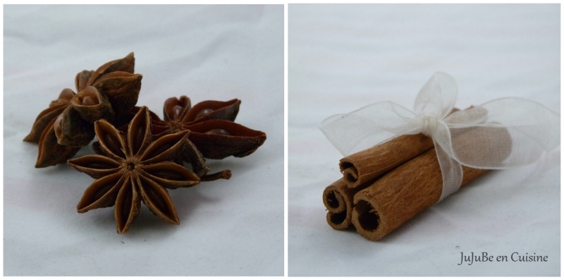 J’ai donc utilisé de la vanille, de la badiane, de la cannelle, de la muscade râpée et une tout petit peu de gingembre… Si peu qu’au final je ne l’ai pas senti ! C’est ballot ! Je vous incite donc à « forcer la pincée » sur le gingembre si vous en appréciez les saveurs !
