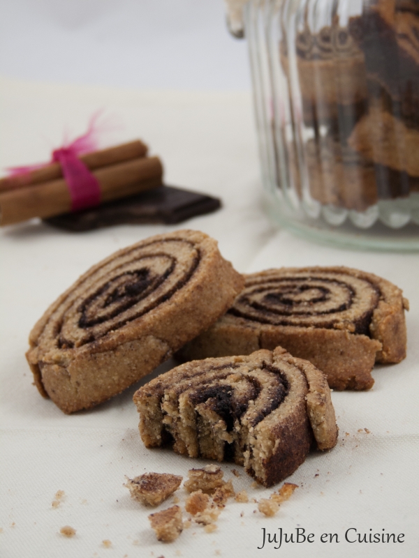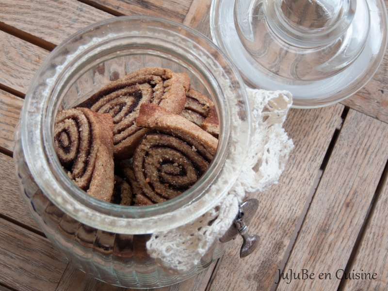 Lundi je vous présentais des petites tartelettes aux pommes sur leur pâte sablée, je vous disais avoir fais beaucoup de pâte. Et bien voilà ce que j’ai fais du restant : des petits sablés roulés bien sympas qui ont été dévorés en un rien de temps !