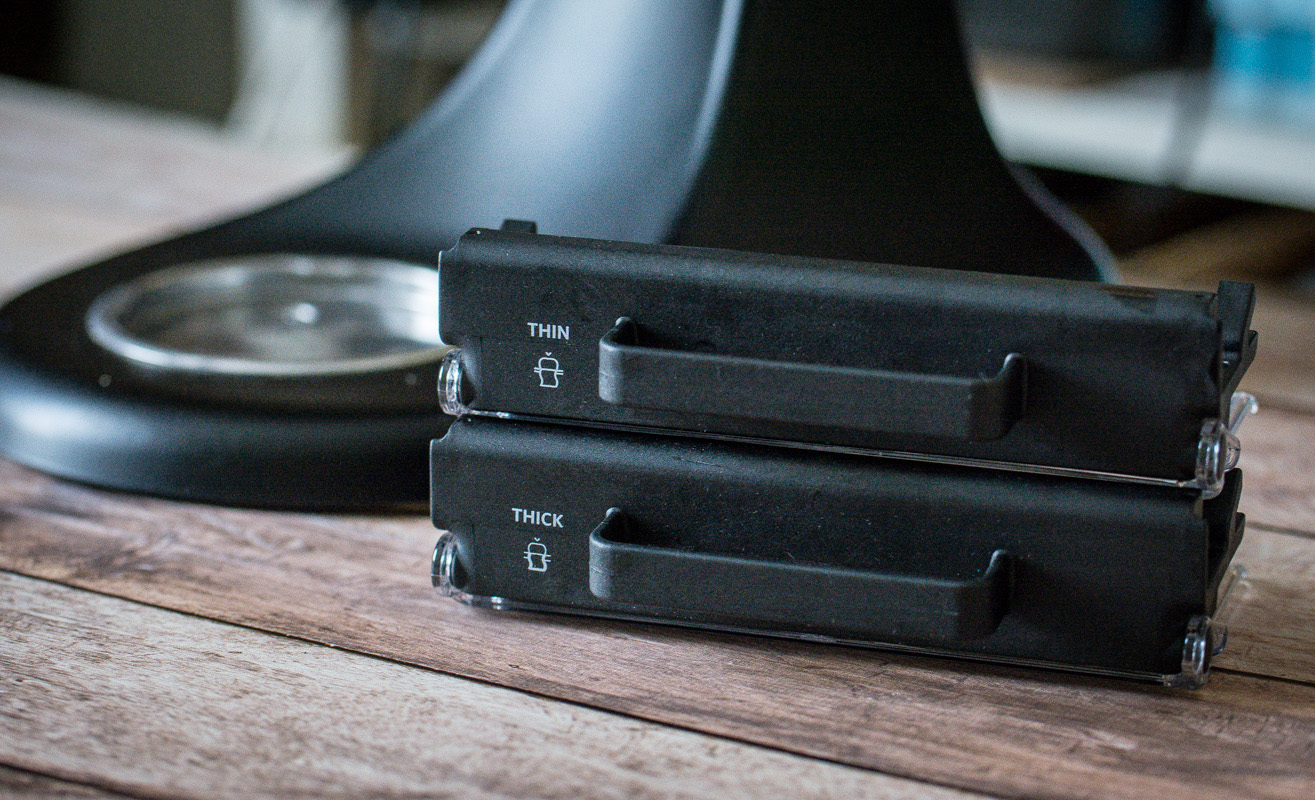 Il contient deux lames différentes permettant de faire des lanières fines (thin) ou épaisse (thick), selon ce que vous souhaitez en faire par la suite.