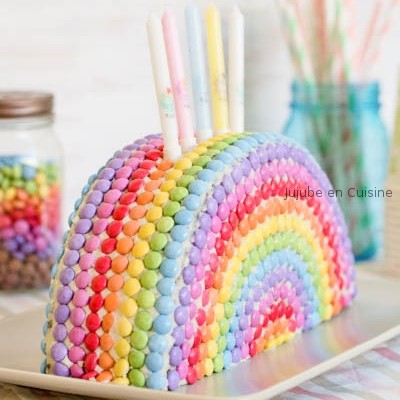 Surtout depuis que j’ai vu un gâteau arc-en-ciel avec des Smarties sur le site de Vertbaudet, je vous en avais fait part sur ma page Facebook.
