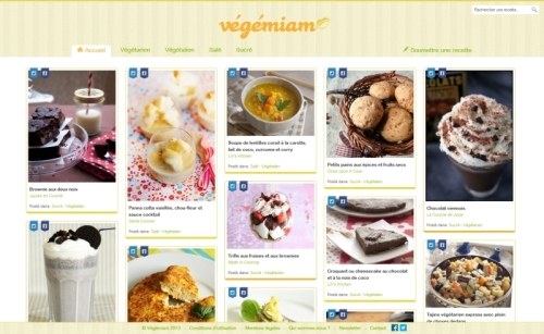 Vegemiam.fr c’est une blogothèque regroupant des recettes végéta*iennes provenant de différents blogs (végé ou pas) facilitant ainsi le quotidien de ceux et celles qui souhaitent cuisiner un repas végétarien ou végétalien : l’internaute est directement envoyé sur le blog d’origine de la recette.